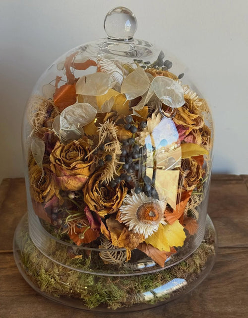 Keep your memories alive with our in-house floral preservation service. Whether it’s a wedding bouquet, memorial flowers, or a meaningful gift, we carefully dry and display your blooms under elegant glass cloches or in shadow boxes.